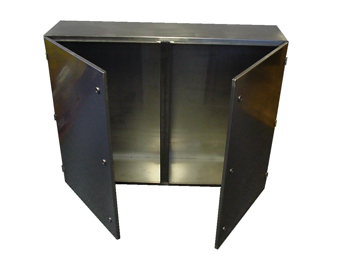 Wandgehäuse mit Lochbildern Material: Stahlblech gepulvert bzw. Edelstahl geschliffen 240 Korn bzw. Glasperl gestrahlt.